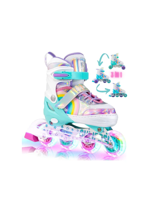 Unicorn patenlerinin 8 tekerleği de LED ışıklarla donatılmıştır. Kaymaya başladığınızda otomatik olarak yanan bu ışıklar, pilleri gerektirmez ve çocuklar için güvenli ve eğlenceli bir deneyim sunar.